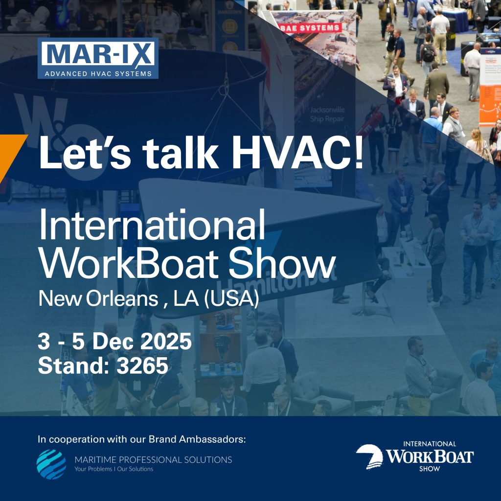 From 3 to 5 December 2025, the International WorkBoat Show in New Orleans will once again bring together the global maritime industry. MAR-IX will be there alongside our Brand Ambassador Maritime Professional Solutions (MPS) at stand 3265 in the Ernest N. Morial Convention Center.